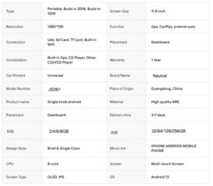 Function:GPS, Stereo, RGB, Remote Control, CarPlay, Mirror Link, android auto, Split Screen, File Manager, Car Steering Wheel Control