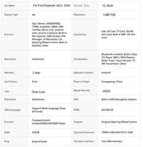 Product Name: Ford Explorer 2011- 2019 GPS car Dvd Stereo Carplay