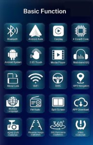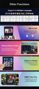 Function:GPS, Stereo, RGB, Remote Control, CarPlay, Mirror Link, android auto, Split Screen, File Manager, Car Steering Wheel Control