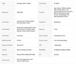 Be the first to review “9.7Inch Universal Android 12 Wireless Carplay Auto OCTA Core DSP for Car Radio Multimedia Video Player Navigation”