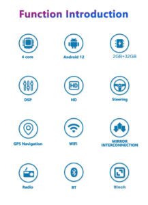 Function:GPS, Stereo, RGB, Remote Control, CarPlay, Mirror Link, android auto, Split Screen, File Manager, Car Steering Wheel Control