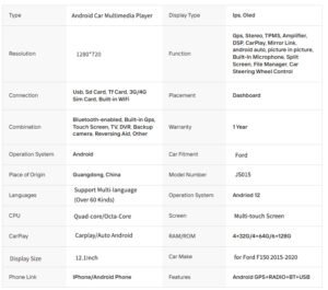 Product Name: Ford F150 F250 F350 F450 2015-2020 Car Dvd Player