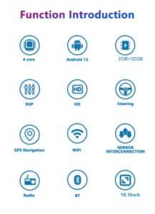 Function:GPS, Stereo, RGB, Remote Control, CarPlay, Mirror Link, android auto, Split Screen, File Manager, Car Steering Wheel Control