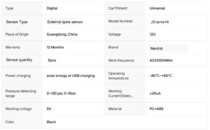 Product name: Solar power External Tire Pressure Monitoring System