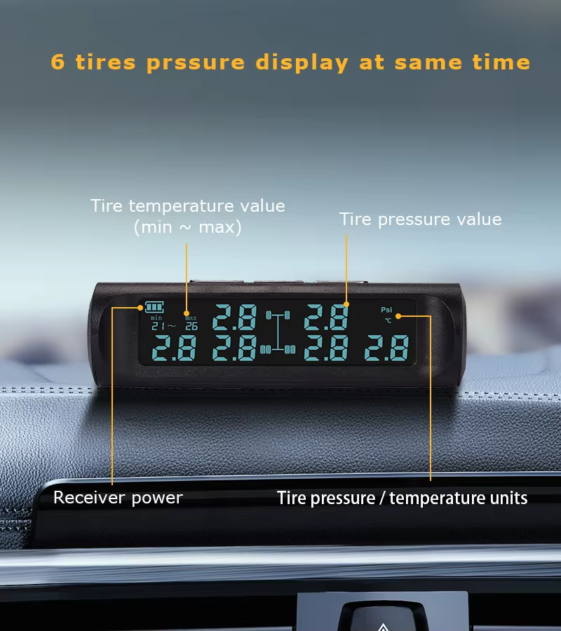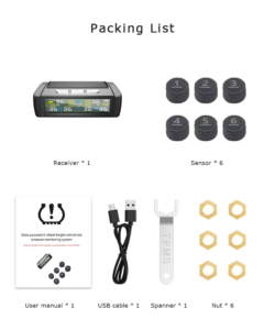 Solar and USB Charging 6 External Smart Precision Tire Pressure Sensors for Truck Trailer and Bus Tire Pressure Monitor