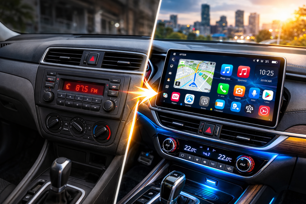 Modern infotainment upgrades increase vehicle appeal and resale value.